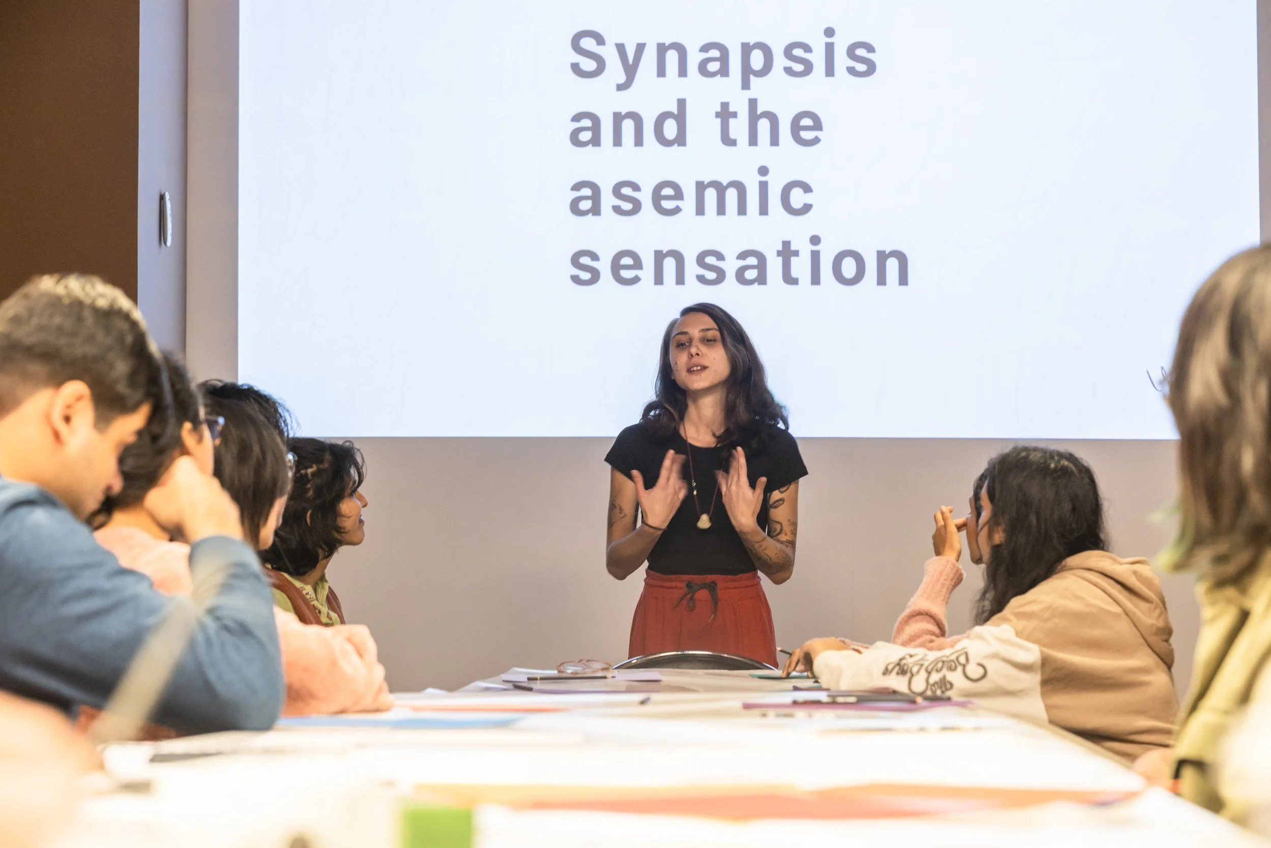 Finally, I conducted a long workshop for undergraduate students and professors of visual arts at the Kiran Nadar Museum. Unlike the other experiences, I was able to introduce some philosophical concepts of asemic language, which intersect with political contexts (as to say Mirtha Dermisache’s works) and unfold as a language tool.