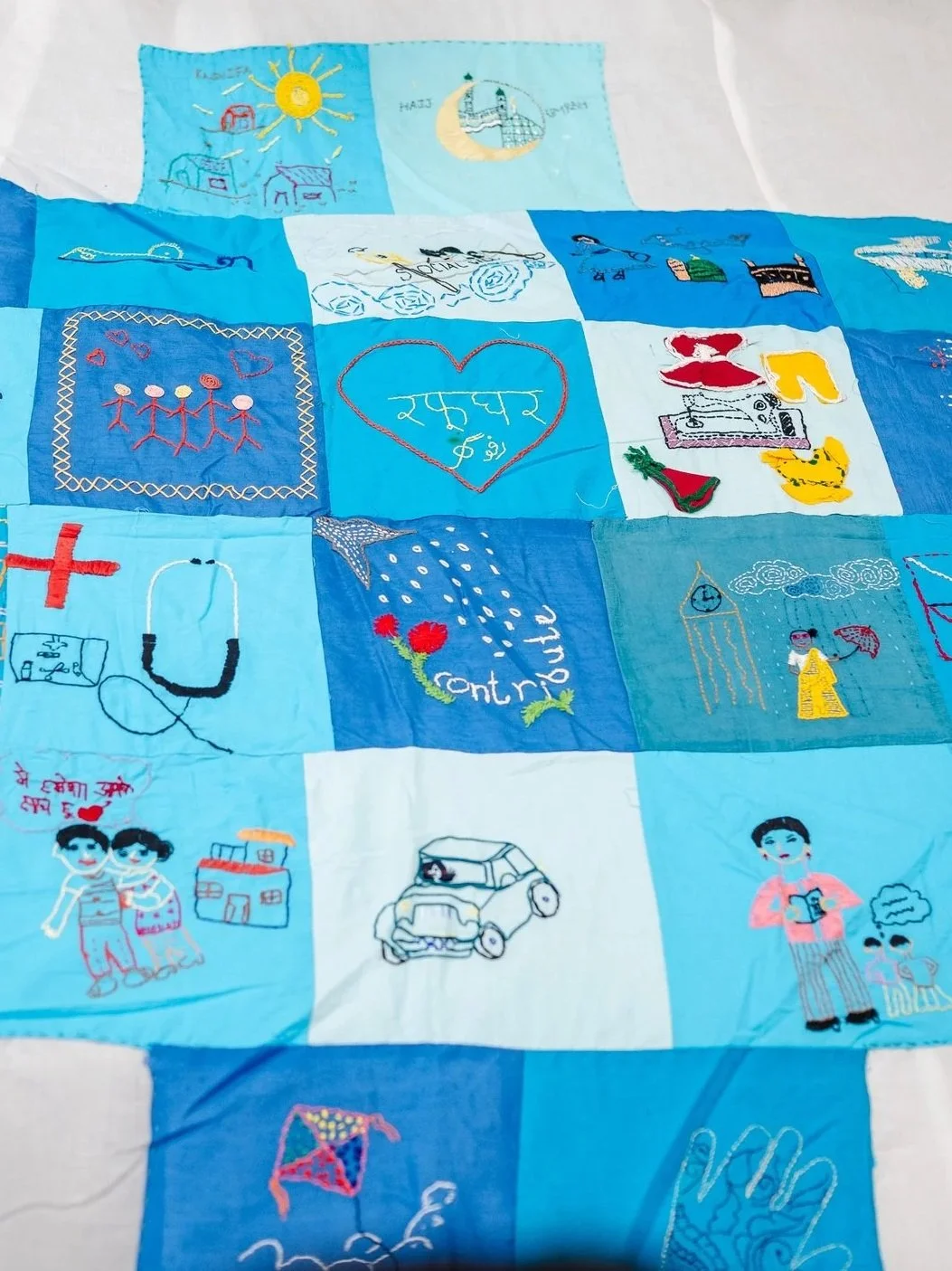 Umeed ka Karavaan invites participants to share their hopes and dreams and stitch together a traveling quilt of hope that has been journeying from community to community, city to city, country to country since 2024.
